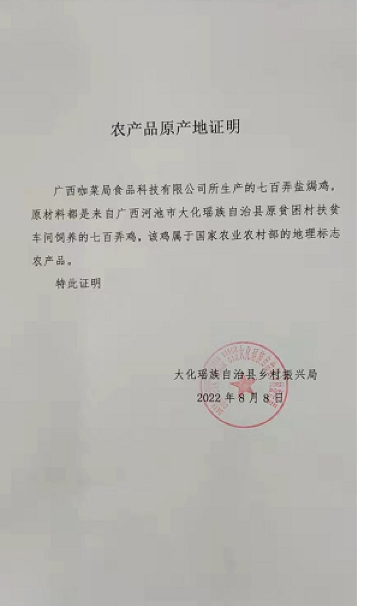 中国大唐 广西大化瑶族自治县 七百弄盐焗鸡约1000g