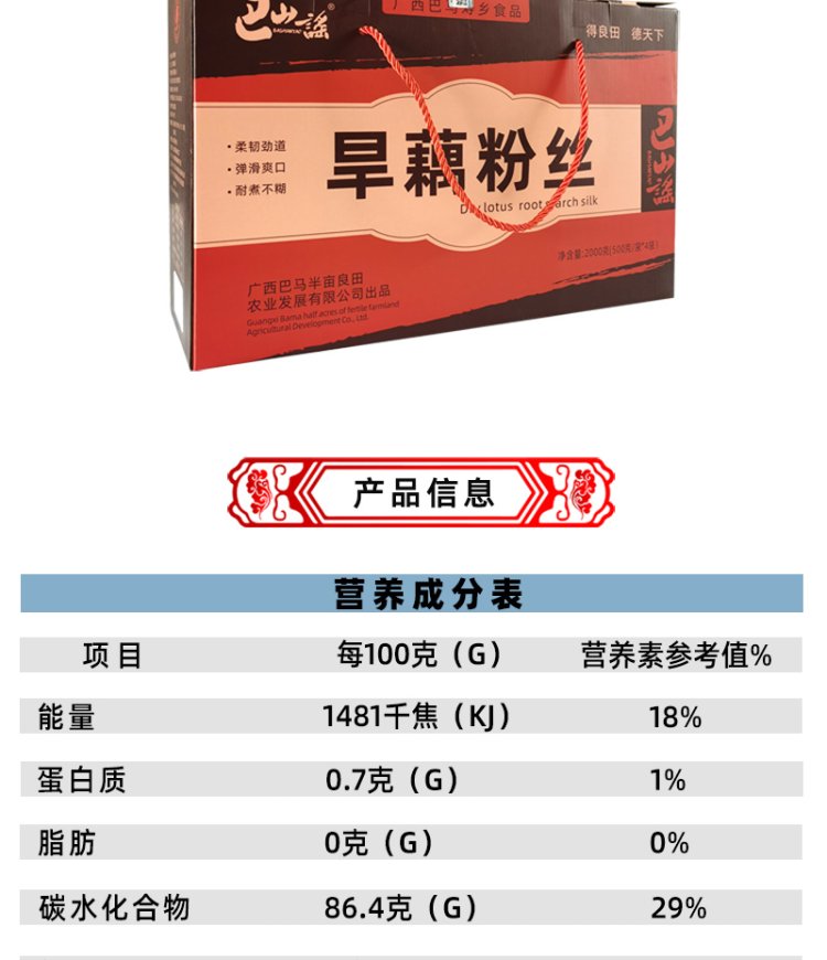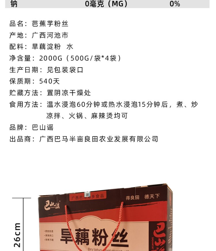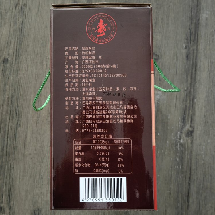 巴马瑶族自治县巴马县旱藕粉丝4斤装芭蕉芋粉条礼盒装