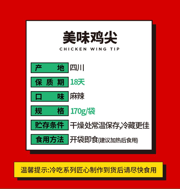 苍溪县贡福天下冷吃鸡尖170g/袋5休闲零食香辣鸡翅鸡尖