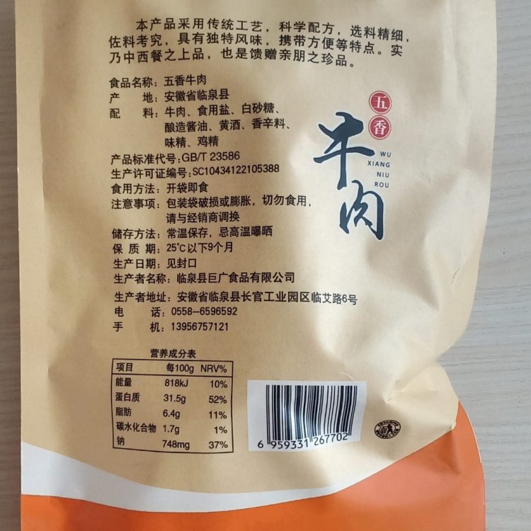 临泉县五香黄牛肉酱牛肉腌制牛肉开袋即食160g*5袋/箱