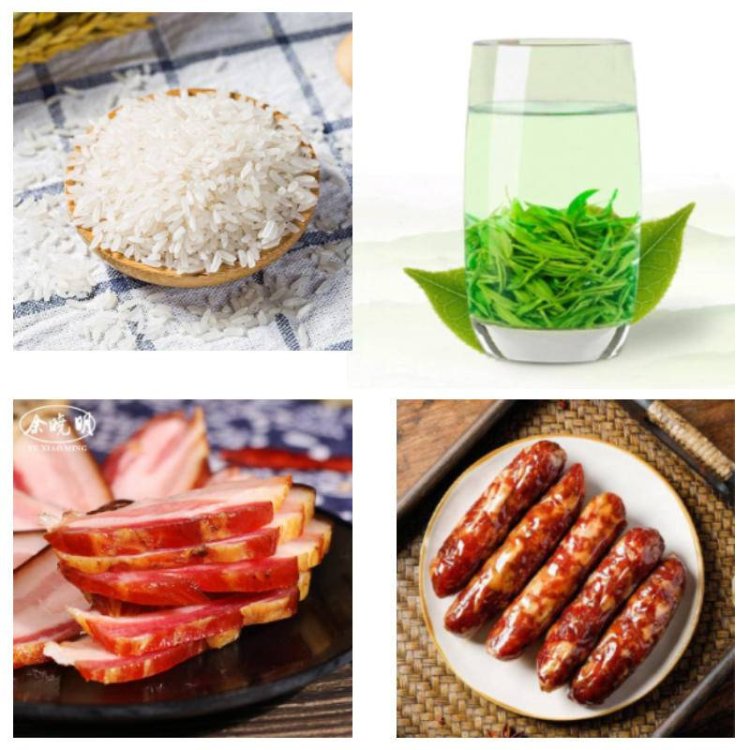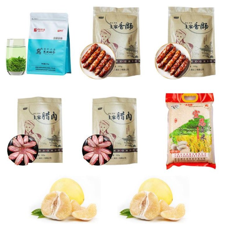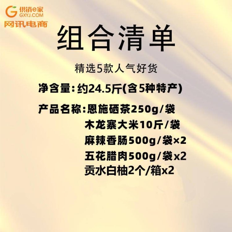 宣恩县明前绿茶+大米+香肠+五花腊肉+贡水白柚组合 约24.5斤