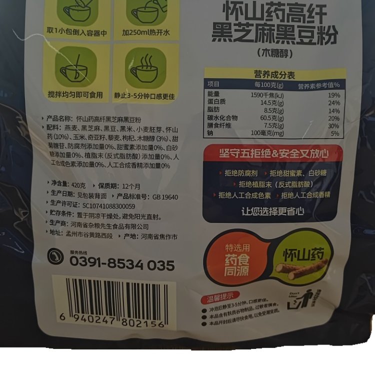 卢氏县河南焦作杂粮先生怀山药高纤黑芝麻黑豆粉420克