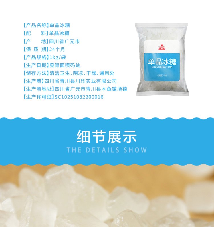 青川县单晶冰糖1000g/袋 小粒白冰糖单晶冰糖甘蔗冰糖