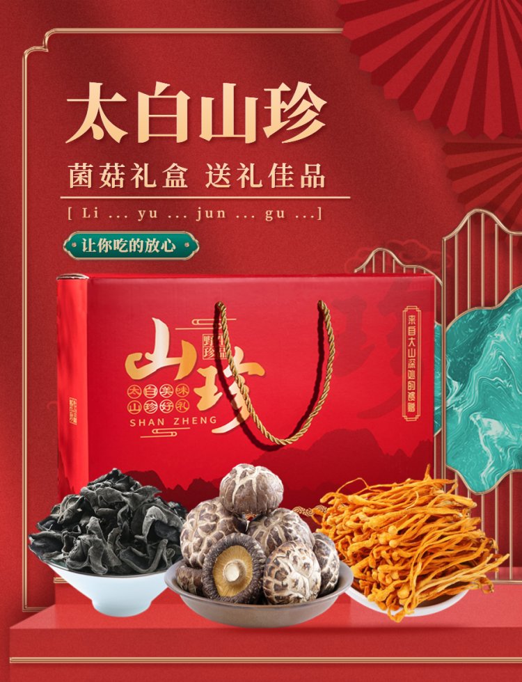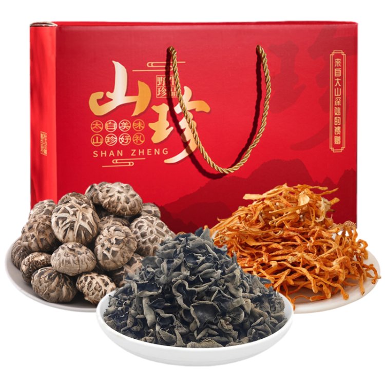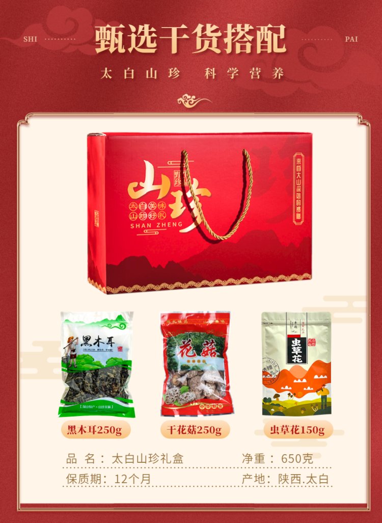太白县优选干菌子太白山珍礼盒650g黑木耳干香菇虫草花组合