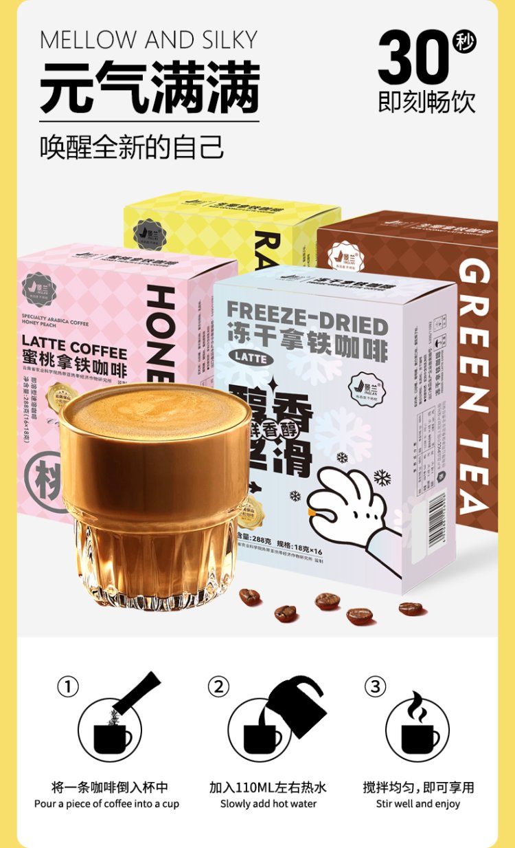 隆阳区隆阳区景兰拿铁三合一速溶咖啡粉特浓1152克