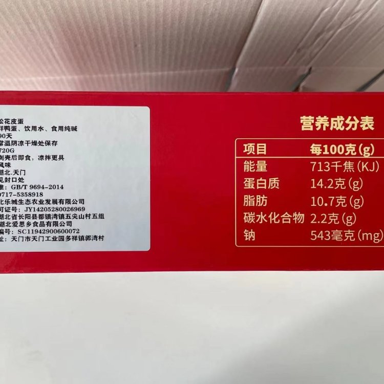 长阳土家族自治县长阳县松花皮蛋礼盒720G/盒