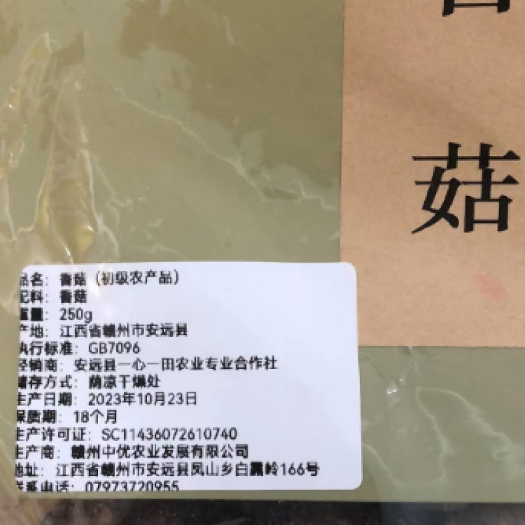 安远县一心一田干菌子山珍优质香菇250g