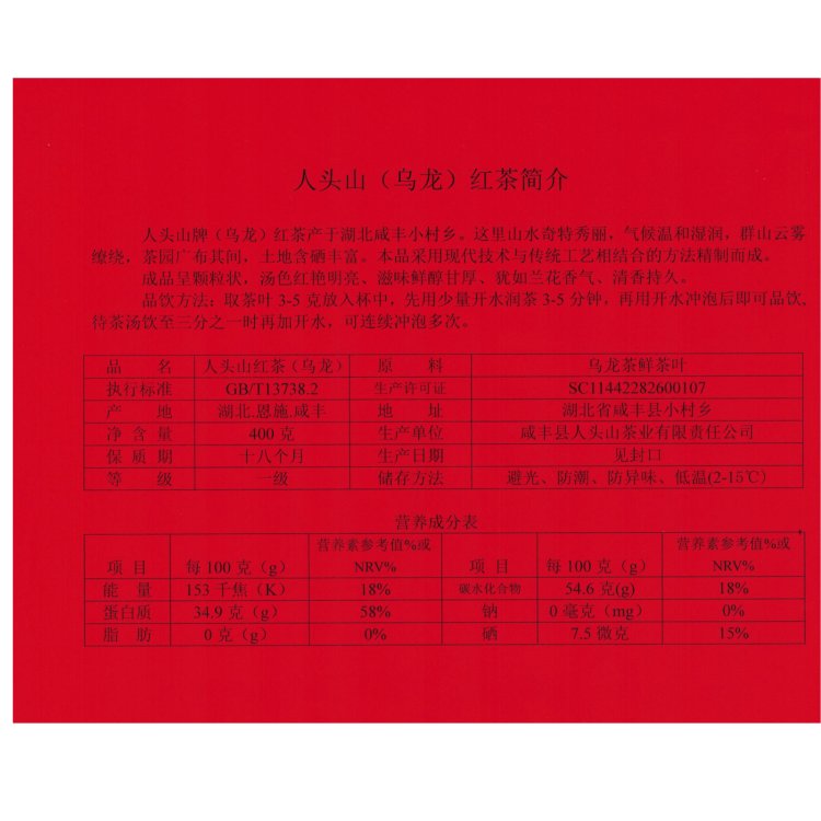 咸丰县人头山红茶(乌龙红茶)400克/盒精装礼盒厂家直销