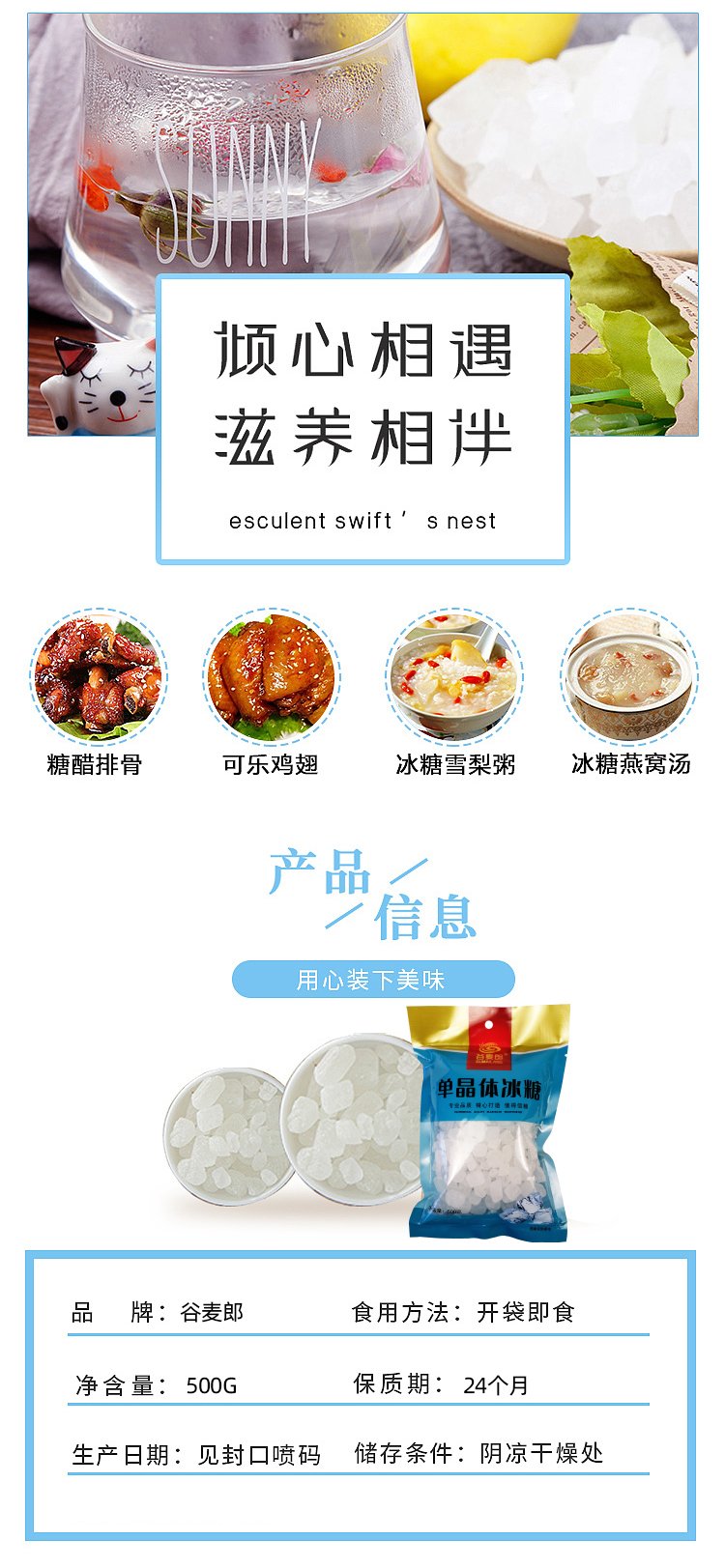 沽源县谷麦郎冰糖500g小粒白冰糖单晶冰糖甜菜冰糖