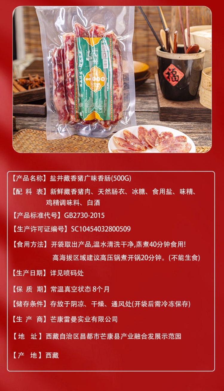 【中国电建 西藏芒康县】盐井藏香猪广味香肠500g