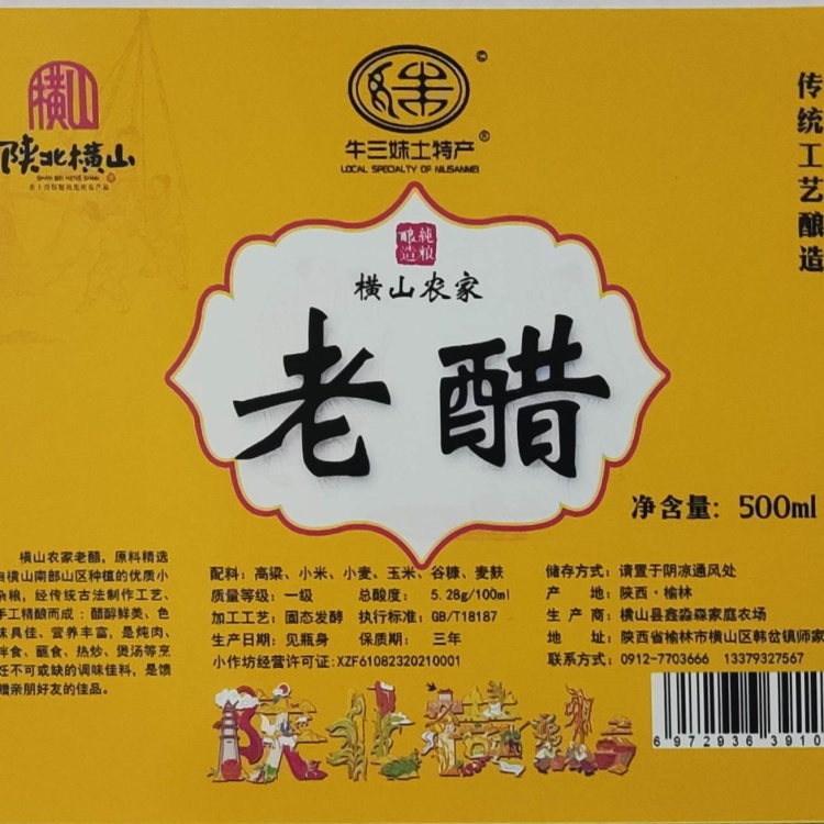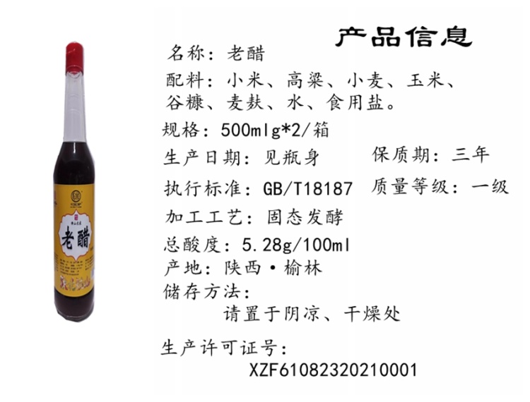 【陕西横山区】牛三妹土特产横山农家老醋500ml*2瓶装
