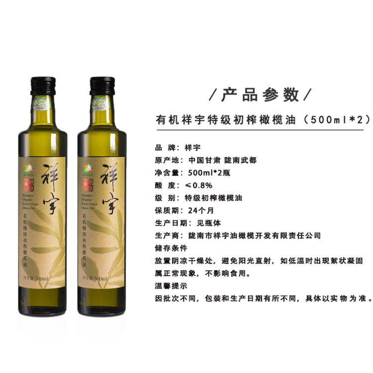 【甘肃武都区】祥宇特级初榨橄榄油500ml*2礼盒装