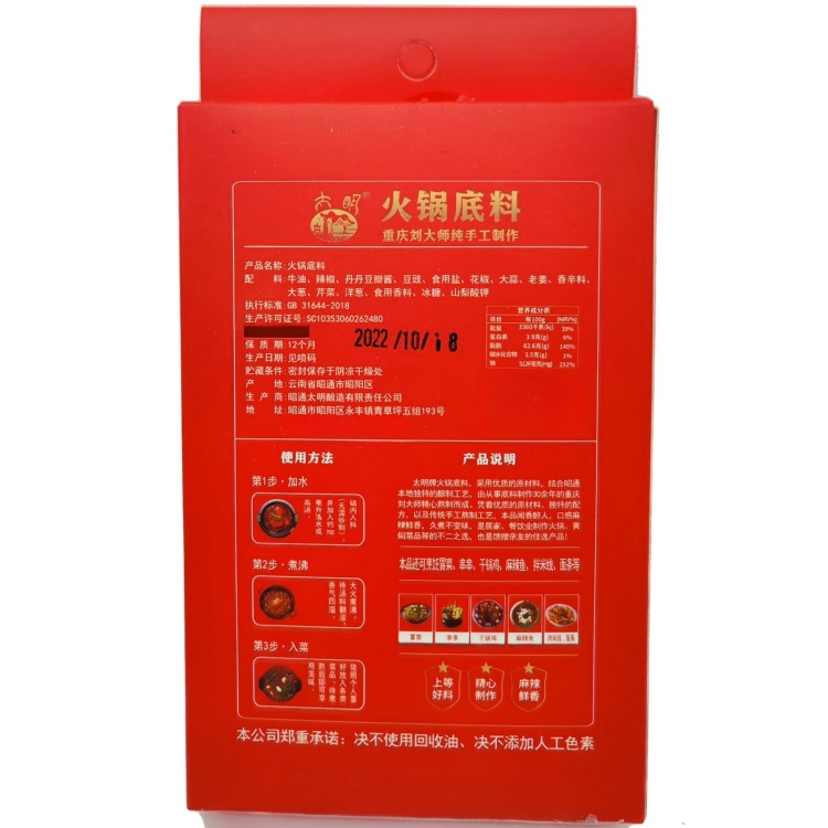 【云南昭阳区】调味料老火锅底料(重庆风味)500gX2盒