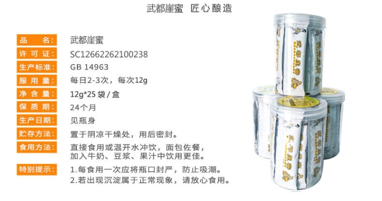 【国家重点】【甘肃武都区】太泉 武都崖蜜 太泉条蜜12g*25条/瓶