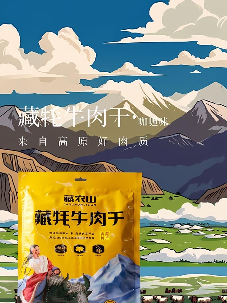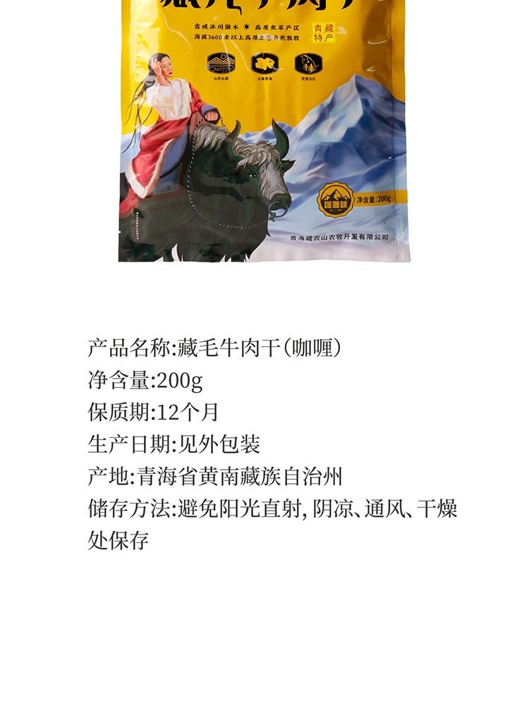 【青海尖扎县】青藏高原牧云星农藏牦牛肉干咖喱味道200g