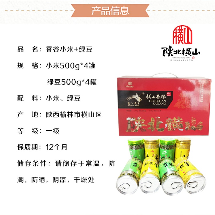 【陕西横山区】爱上波罗灌装小米500g*4+绿豆500g*4杂粮礼盒