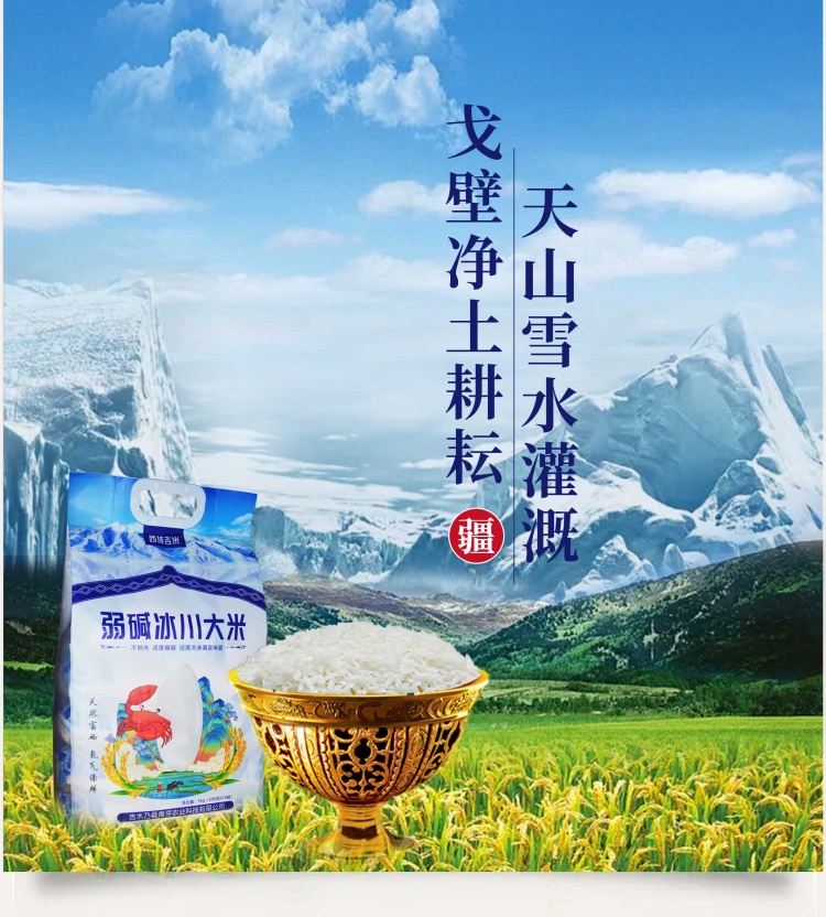 【中石油 新疆吉木乃县】弱碱冰川大米5kg新疆大米一级长粒当季现磨新米