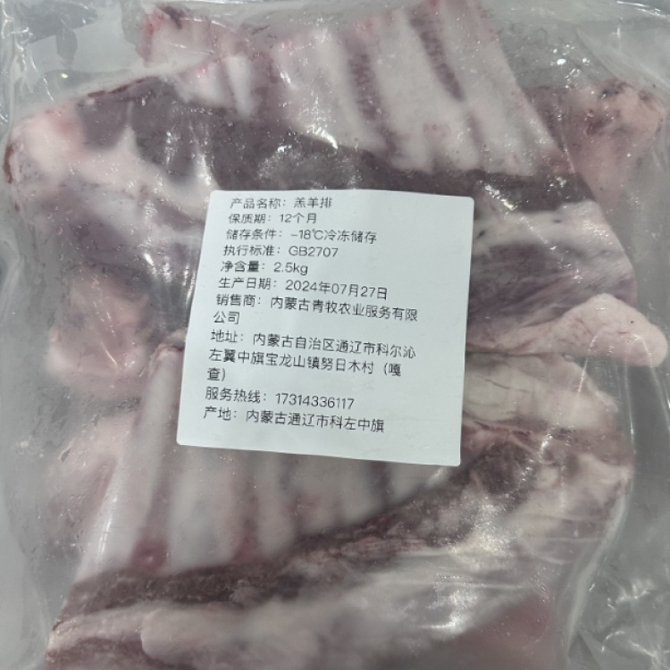 【内蒙古科尔沁左翼中旗】草原精选羔羊排2.5kg