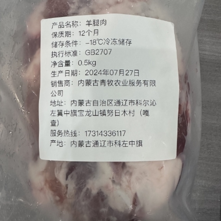 【内蒙古科尔沁左翼中旗】草原精选羊腿肉500g