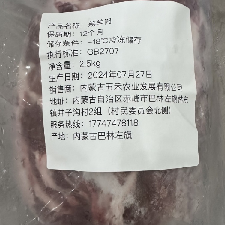 【内蒙古巴林左旗】绿五禾羔羊肉2.5公斤