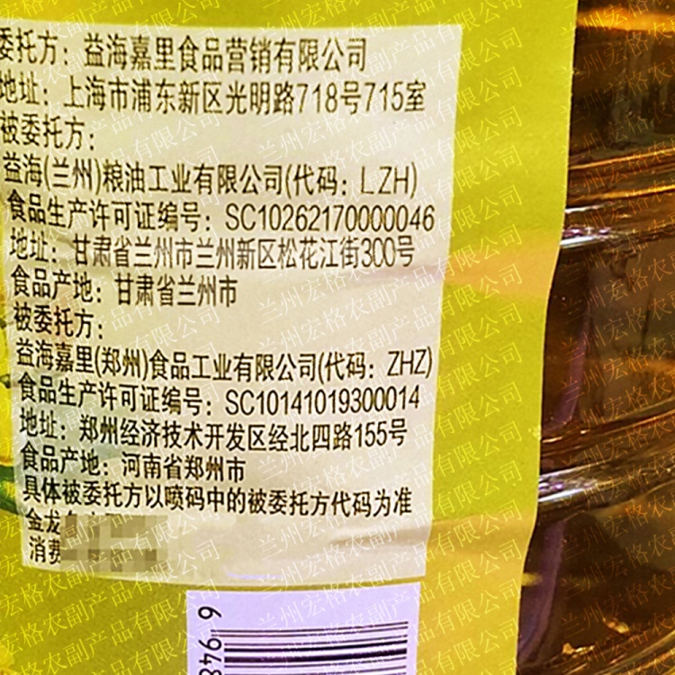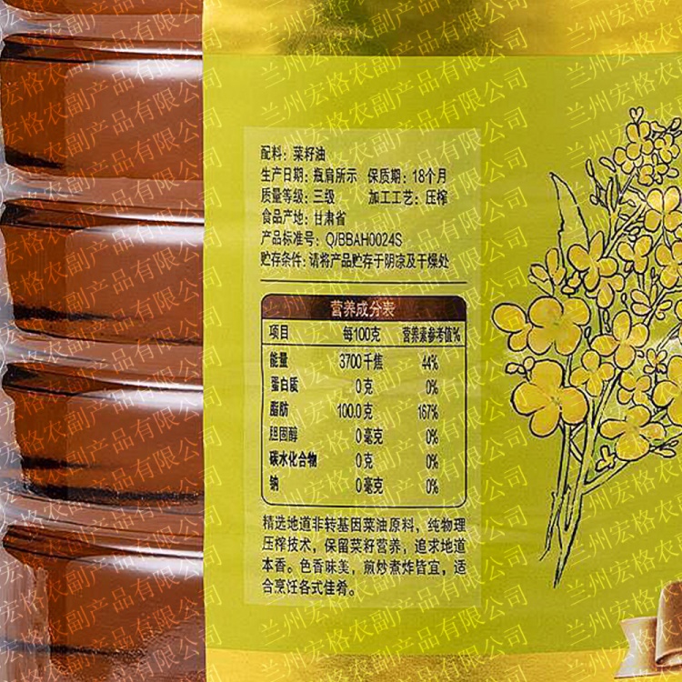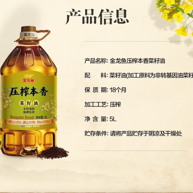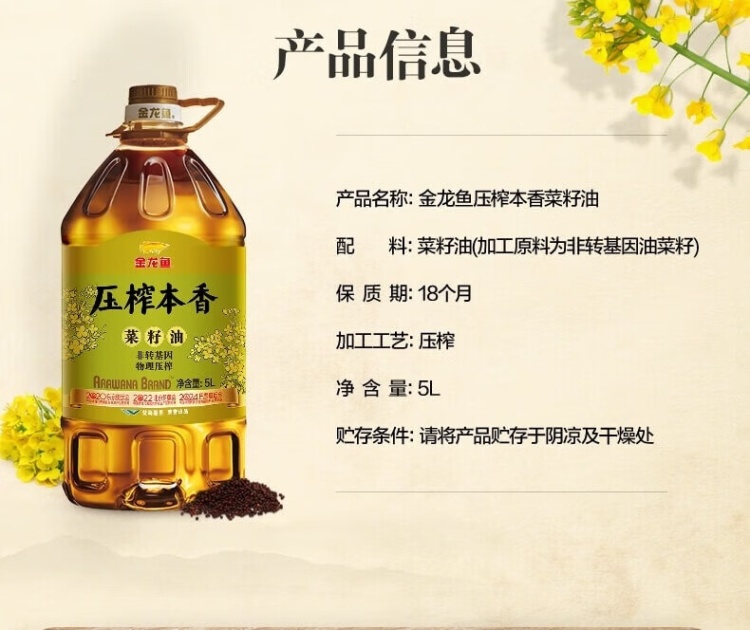 【甘肃皋兰县】金龙鱼压榨本香非转物理压榨菜籽油5L包邮包卸菜籽油