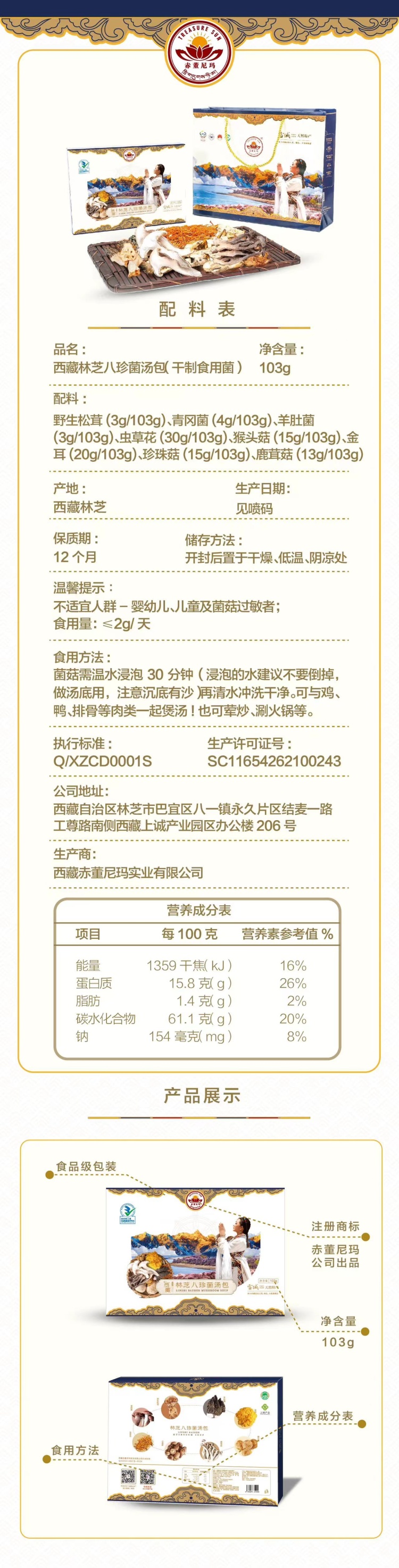 【西藏巴宜区】雪域高原八珍菌汤包103g(盒)