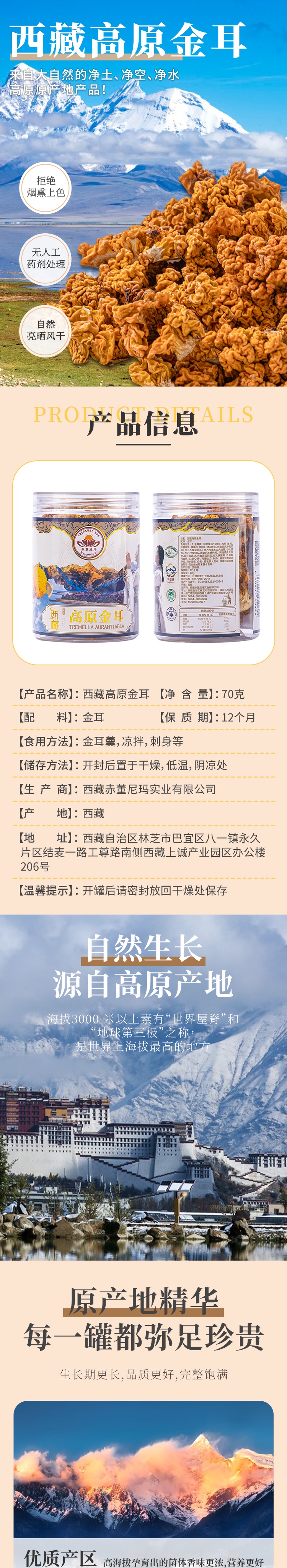 【西藏巴宜区】高原滋补金耳70g(瓶)