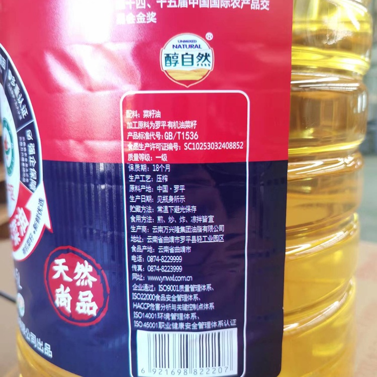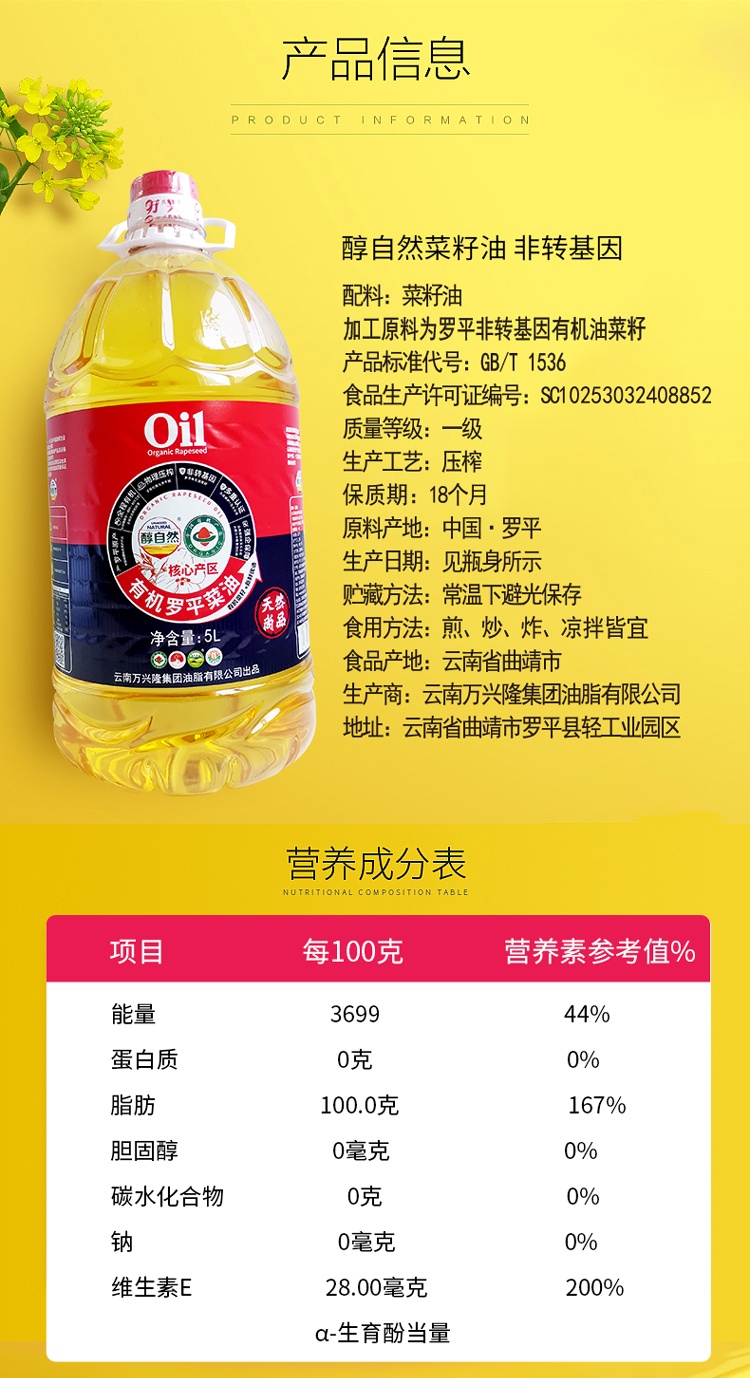 【云南罗平县】醇自然有机罗平菜油一级5L