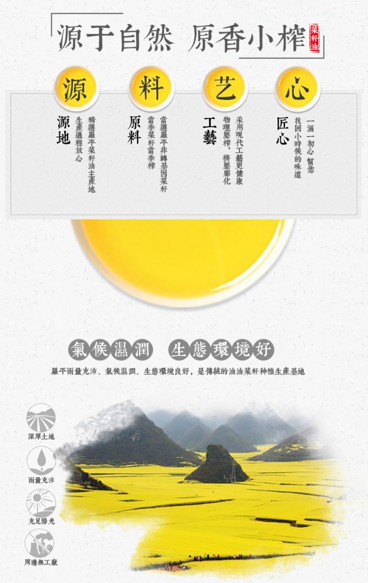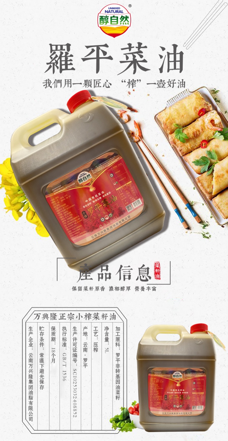 【云南罗平县】醇自然小榨菜籽油5L