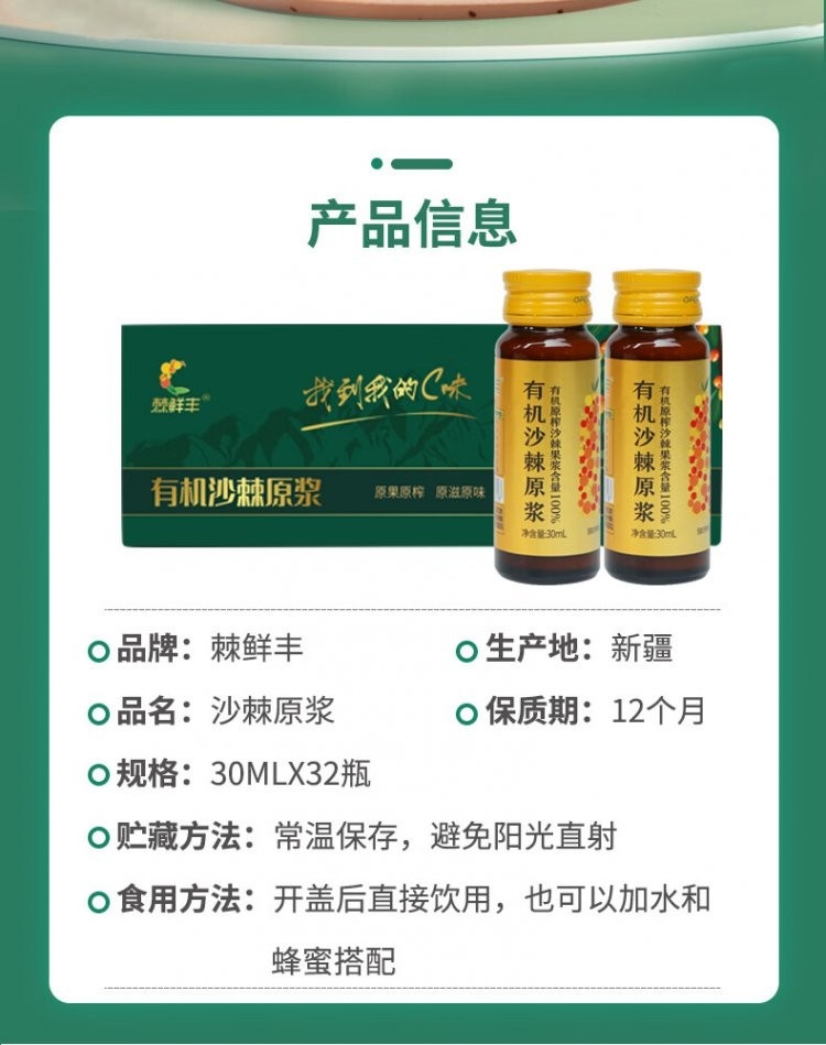 【集团定点】【新疆阿合奇】棘鲜丰沙棘原浆30ml*32瓶