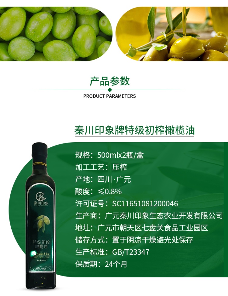 【国机集团四川朝天区】秦川印象橄榄油500ml*2盒装