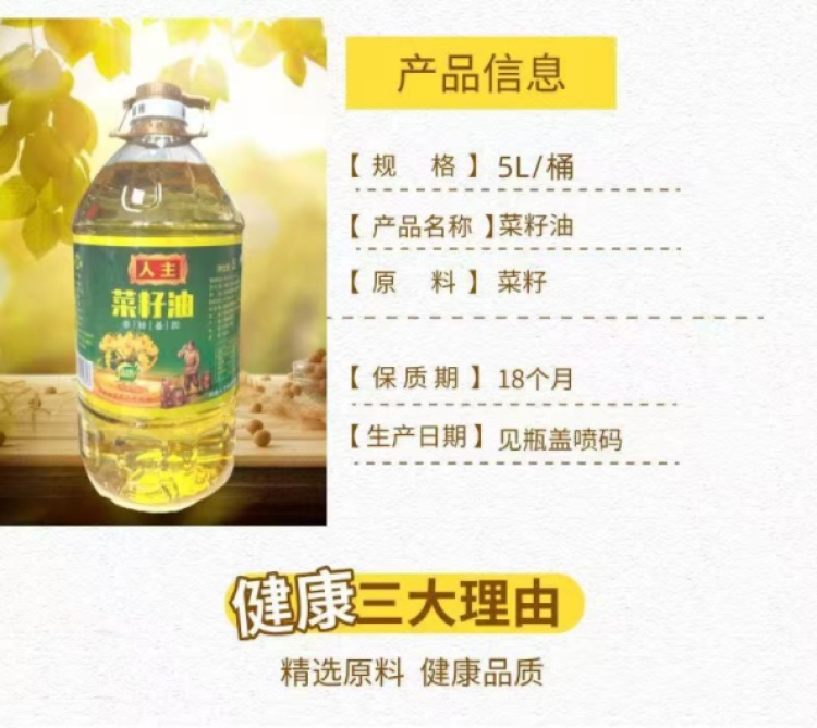 【国机集团河南固始县】申源纯香菜籽油5L桶非转基因物理压榨健康家庭装食堂