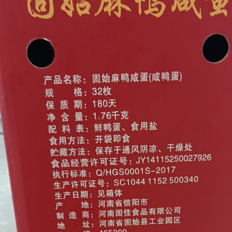 【国机集团河南固始县】固佳麻鸭咸鸭蛋红心流油鸭蛋咸蛋黄32枚礼盒