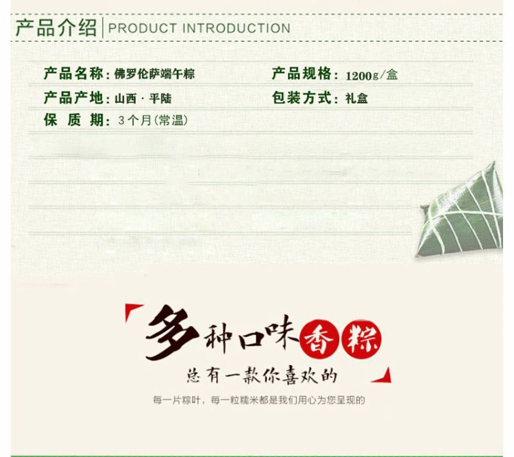 【国机集团山西平陆县】佛罗伦萨精品端午粽子礼盒装120gX10