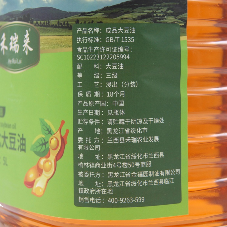 【中储粮集团黑龙江兰西县】禾瑞来东北大豆油5L食用油食堂专供非转基因