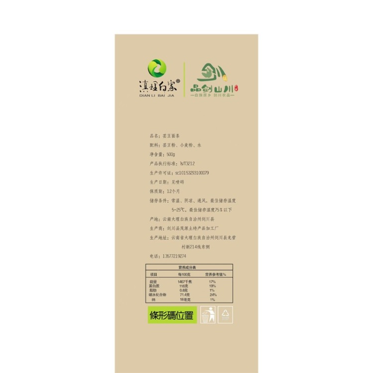 【单一地址100件起订】云南剑川 滇理白家芸豆面500g