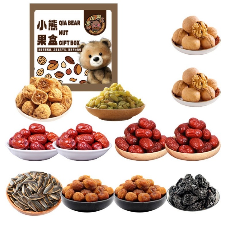 【阿合奇县】洽小熊小熊果盒2860g(绿香妃250g、核桃250gX2、灰枣250g/X2、骏枣250gX2、无花果250g、瓜子210g、杏干200gX2、西梅干250g)