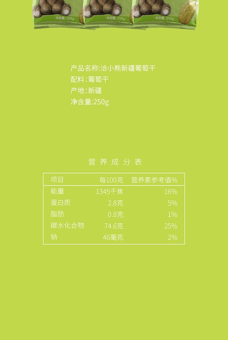 【新疆阿合奇县】洽小熊葡萄干绿香妃250g