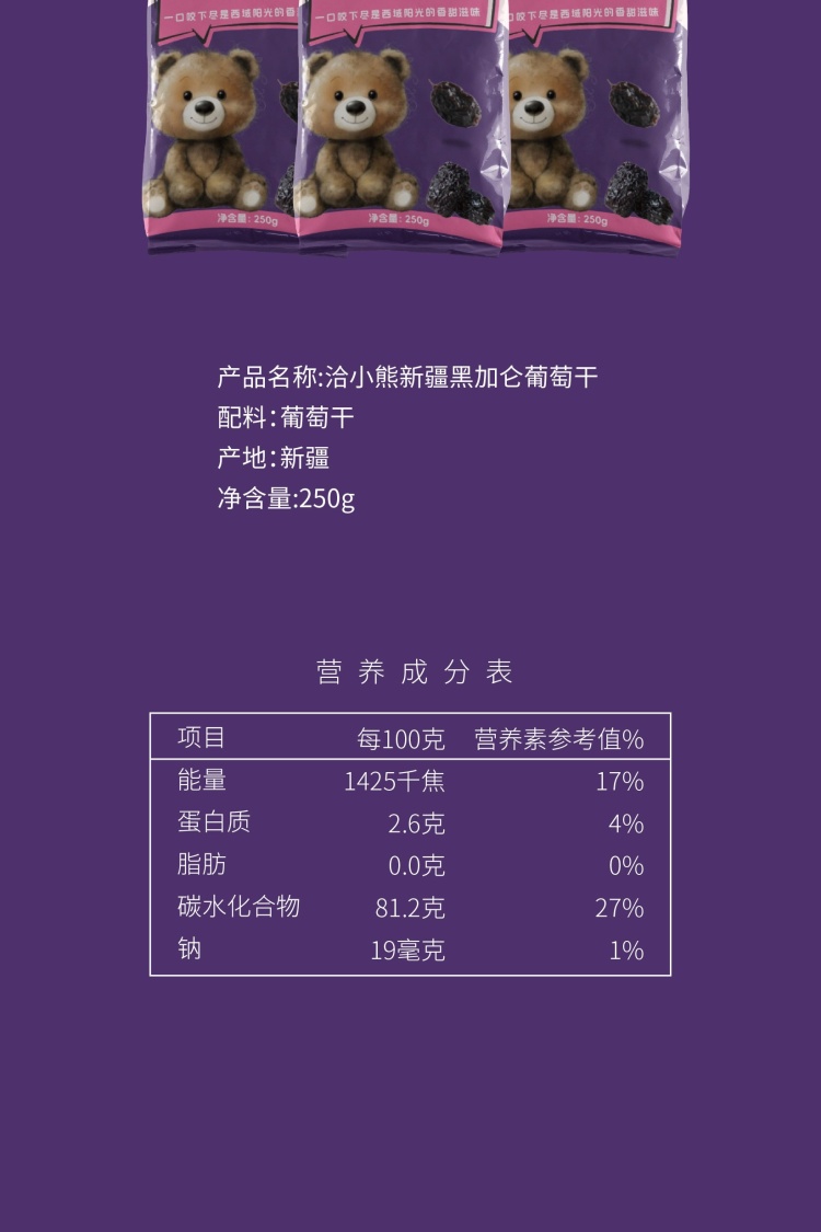 【新疆阿合奇县】洽小熊黑加仑葡萄干250g