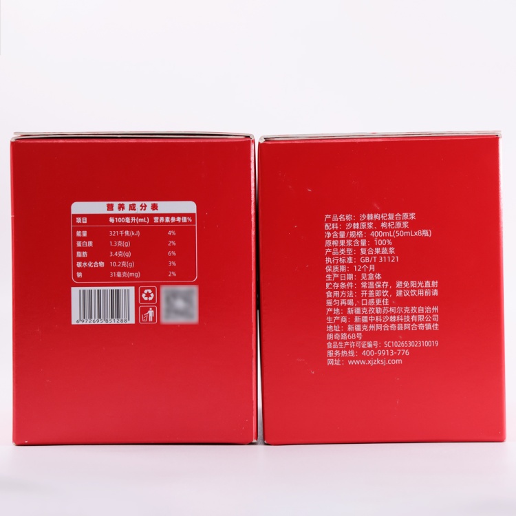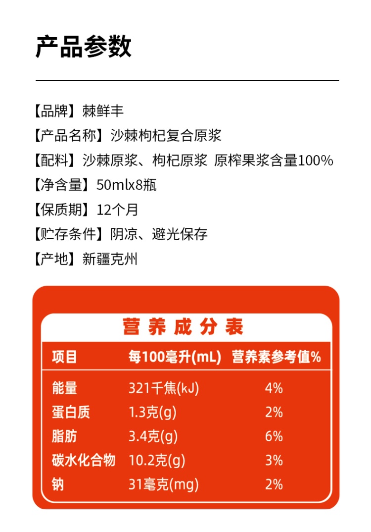 【新疆阿合奇县】棘鲜丰沙棘枸杞复合原浆50ml×8瓶