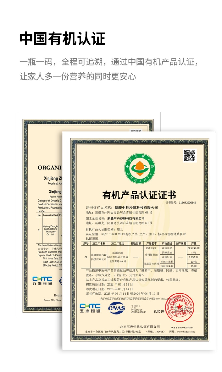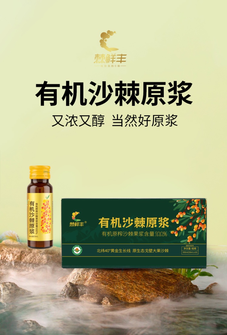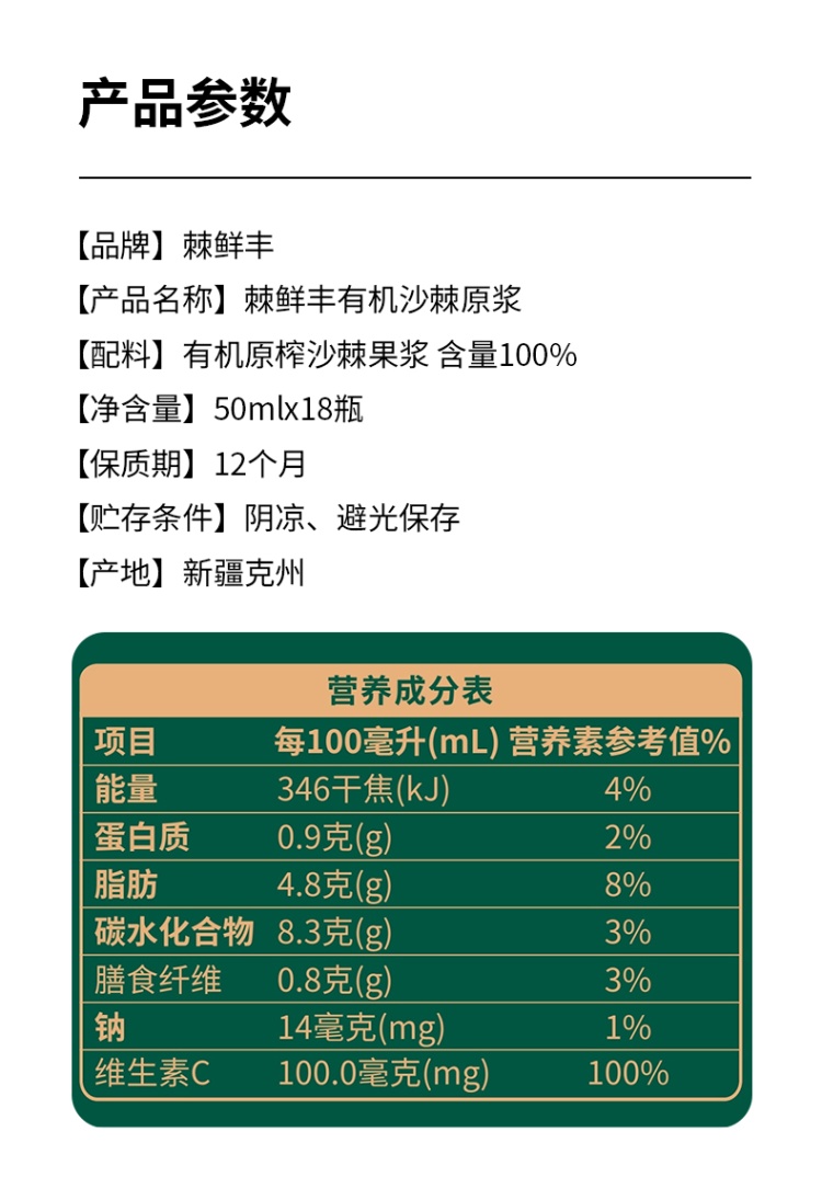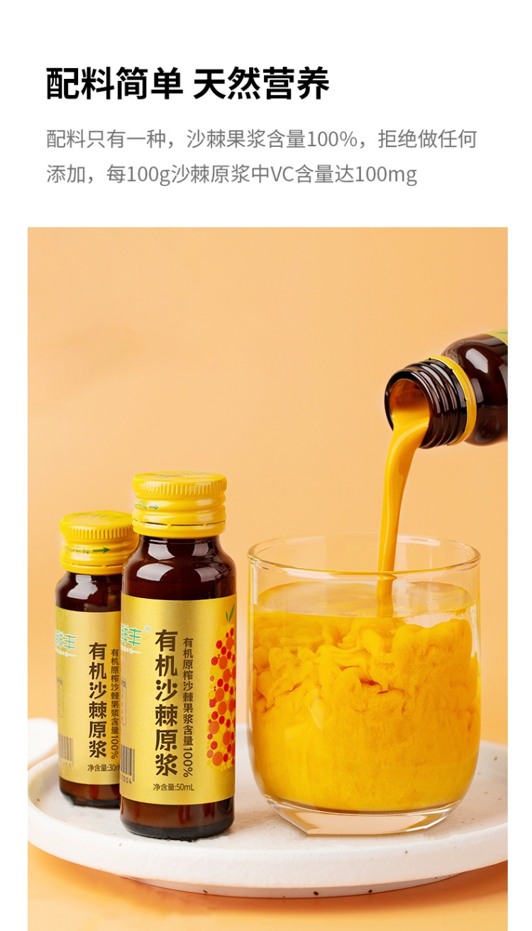【新疆阿合奇县】棘鲜丰有机沙棘原浆50ml×18瓶
