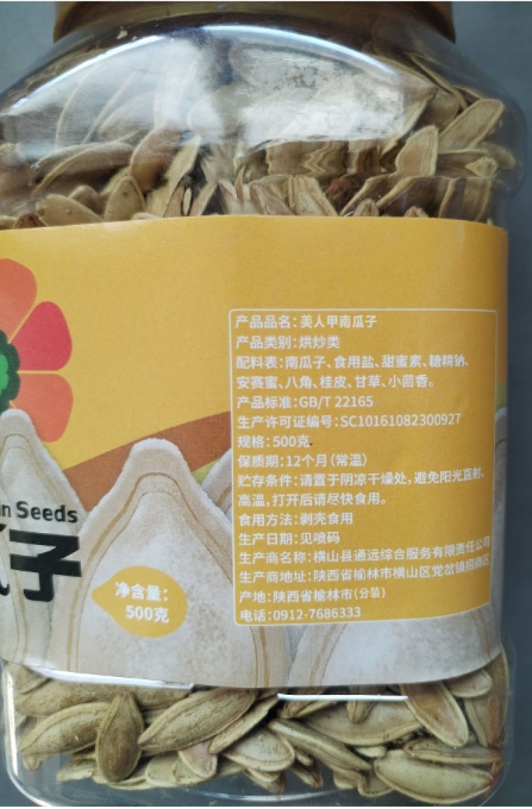 【陕西横山区】通远山丹丹花美人甲南瓜籽500g桶装