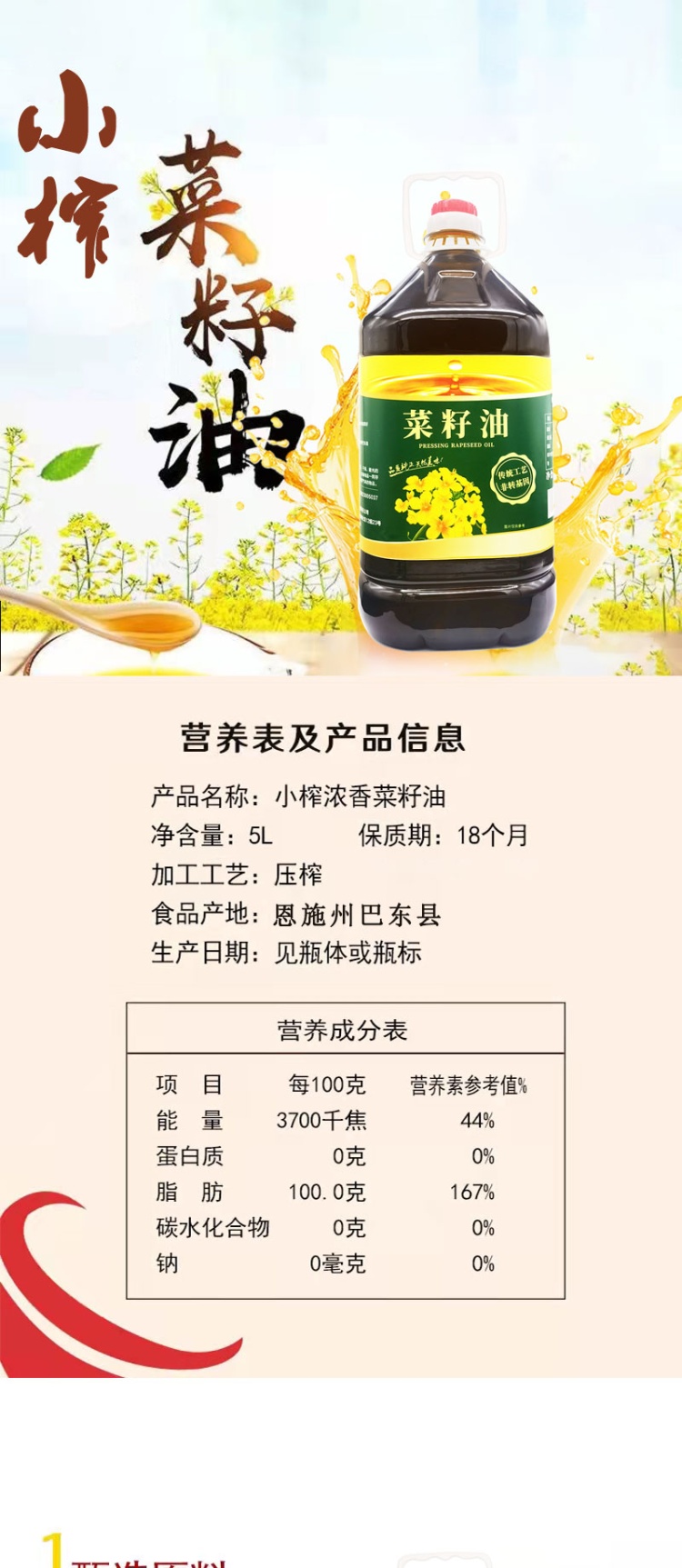 【国家电网 湖北巴东县】正宗小榨土菜籽油5L
