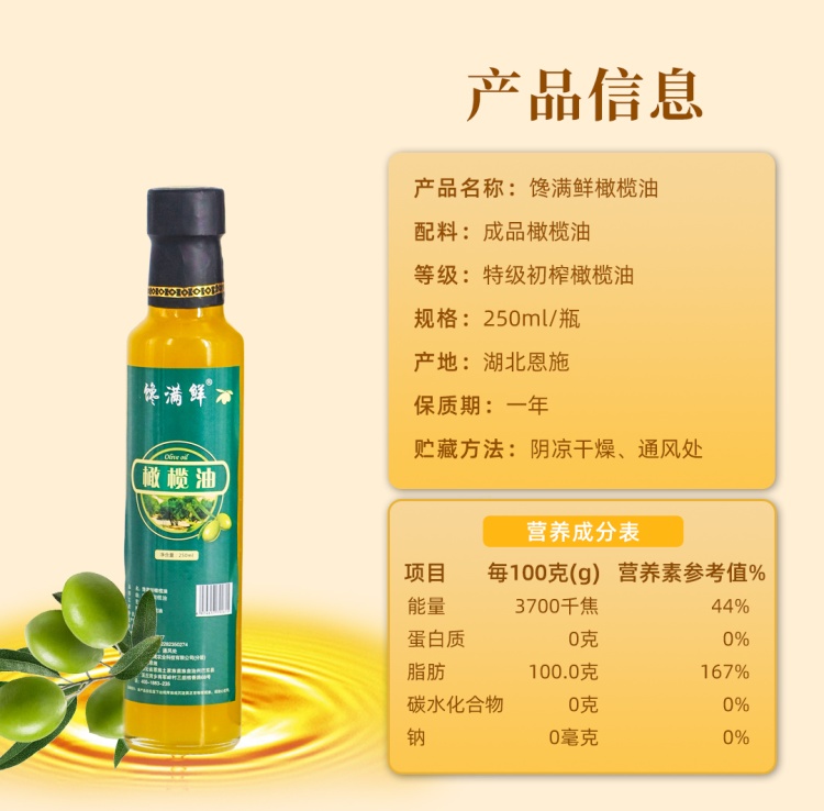 【国家电网 湖北巴东县】馋满鲜压榨纯橄榄油250ML