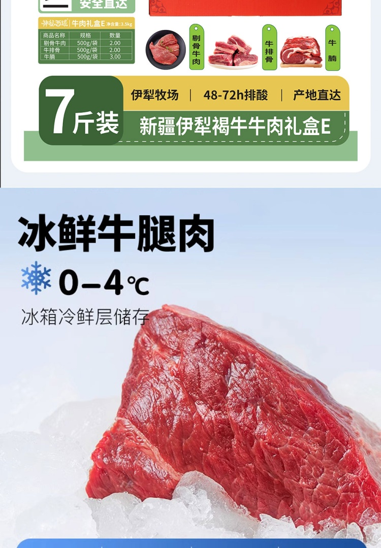 【中石油 新疆尼勒克县】新疆伊犁褐牛牛肉礼盒E(7斤/箱)