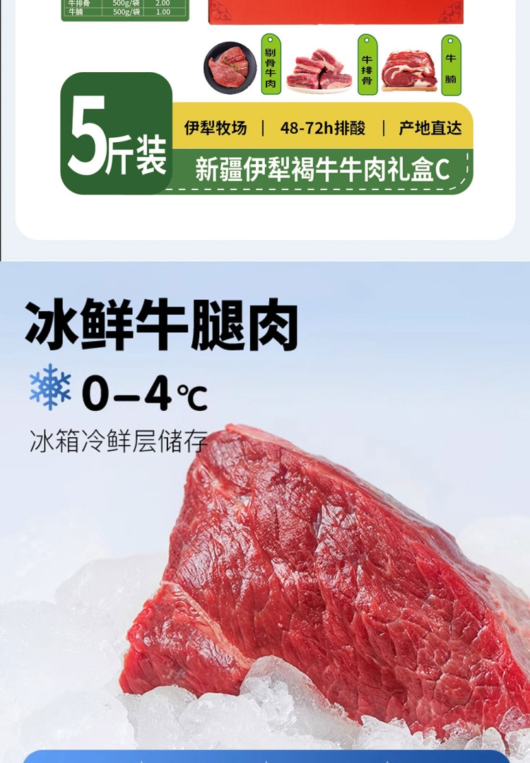 【中石油 新疆尼勒克县】新疆伊犁褐牛牛肉礼盒C(5斤/箱)