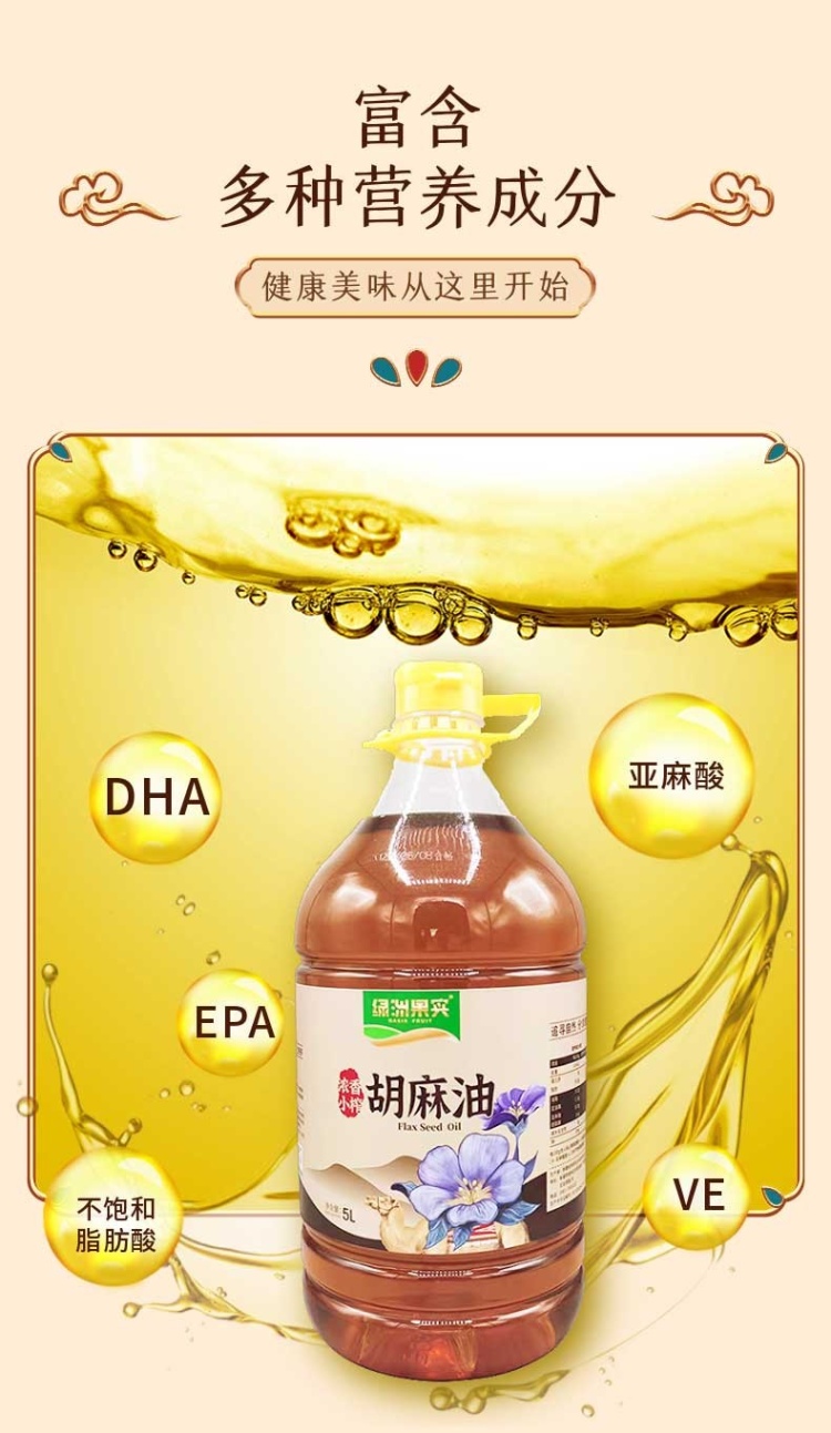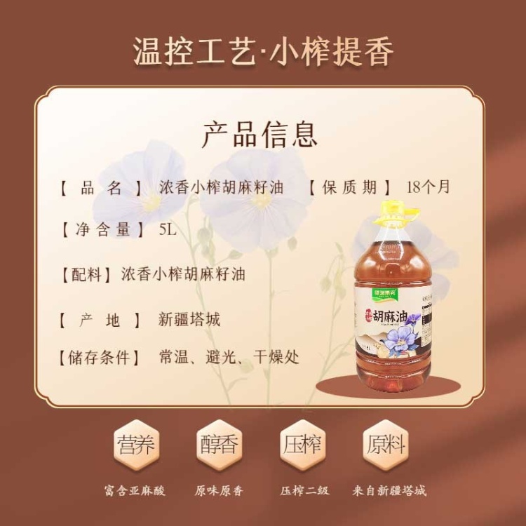 【中石油 新疆托里县】绿洲果实浓香小榨胡麻油5L
