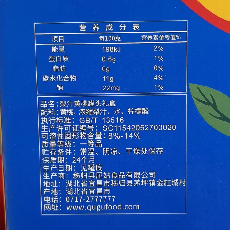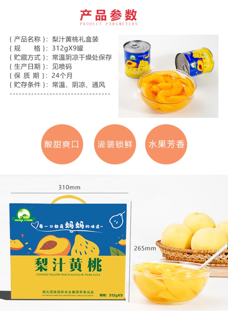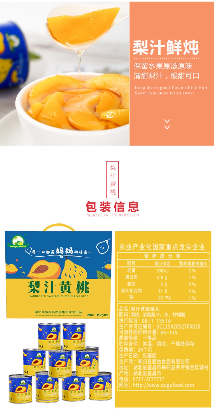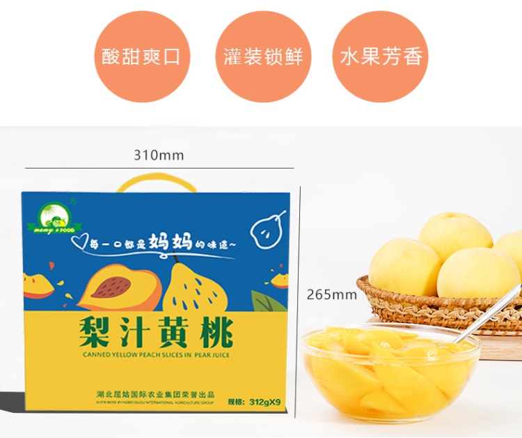 【中石油 湖北秭归县】屈姑梨汁黄桃罐头312g×9罐/盒