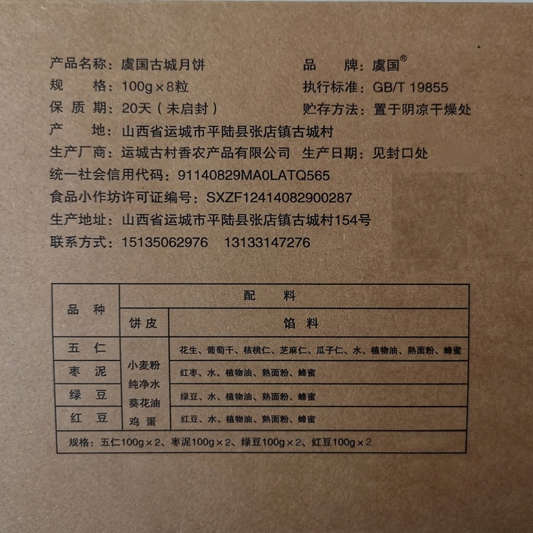 【国机集团 山西平陆县】虞国古城月饼100g8粒