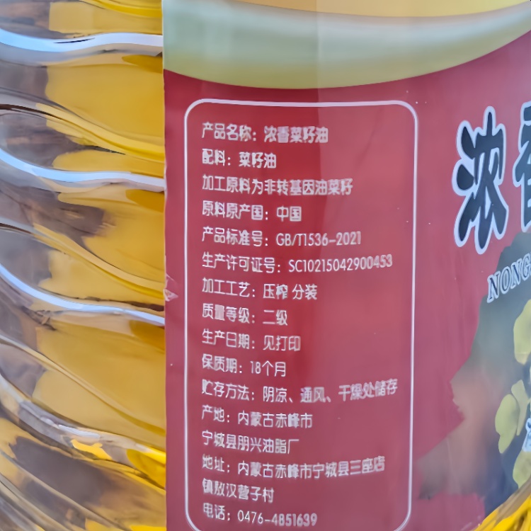 【国家能源集团 内蒙宁城县】精选菜籽油5L菜籽油食堂专用食用油菜籽油包邮